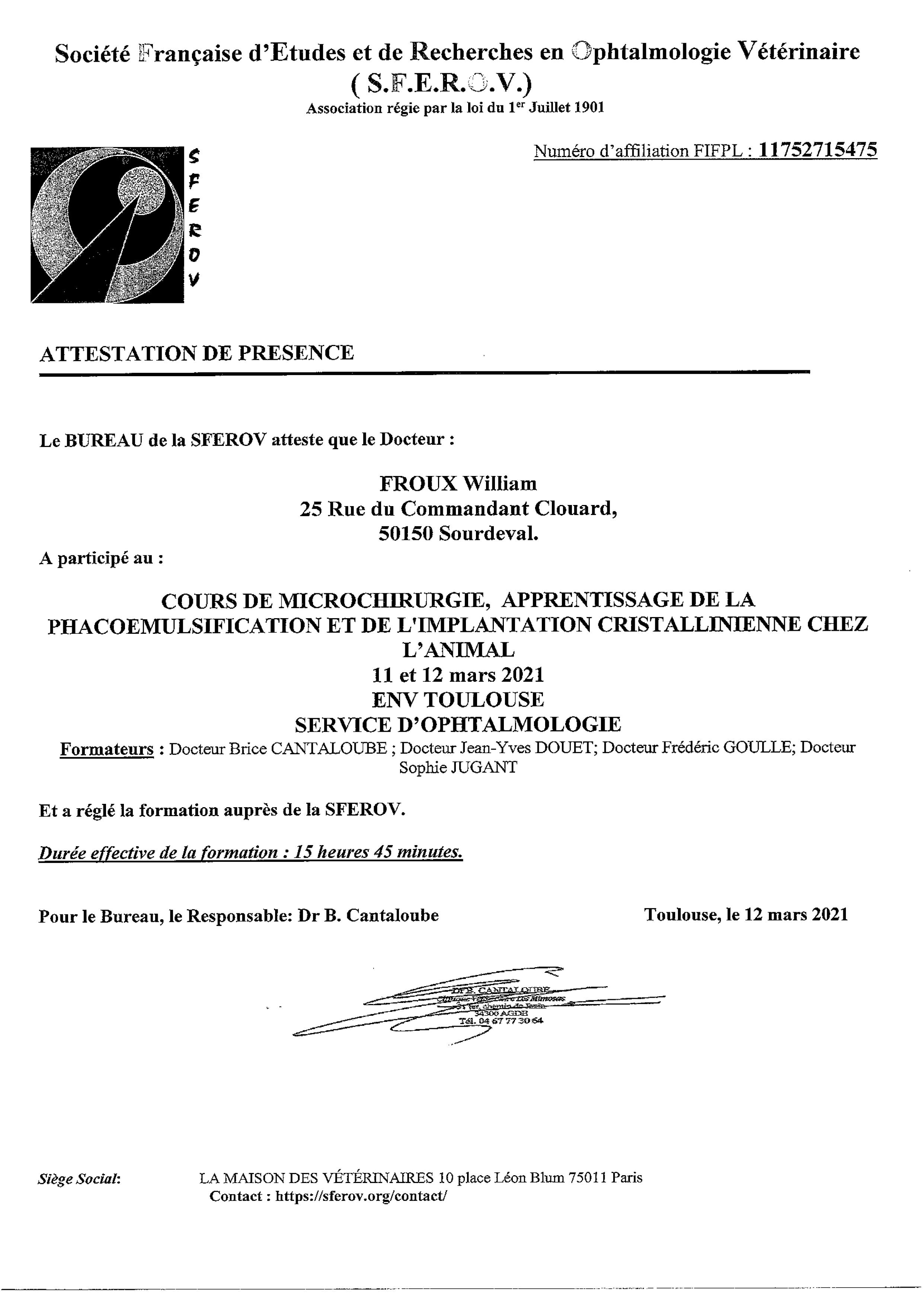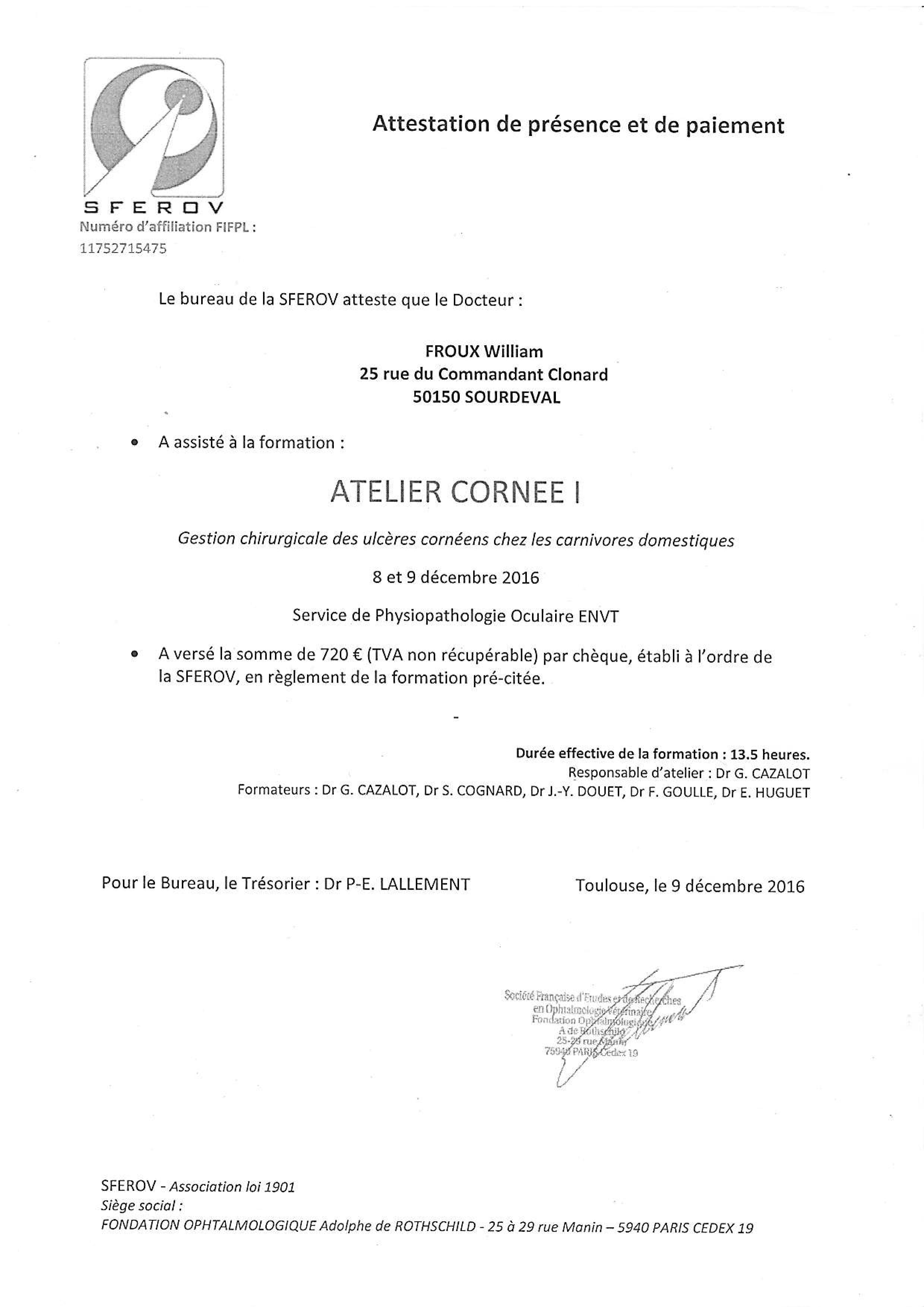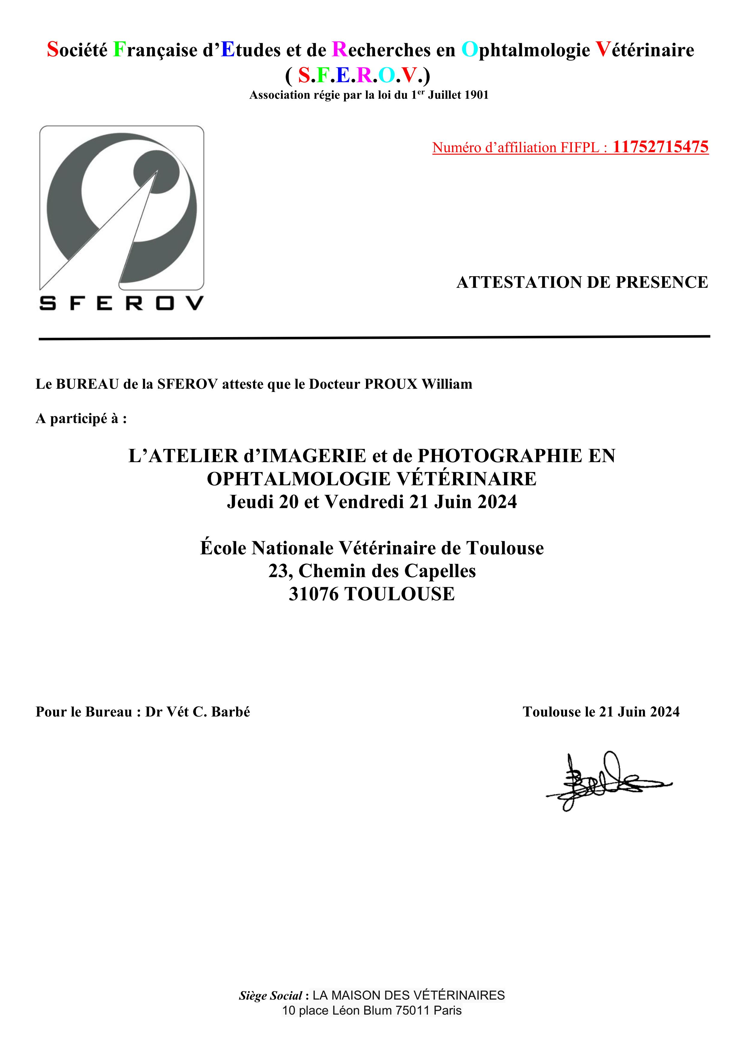 - Un compte rendu sera adressé à votre vétérinaire habituel